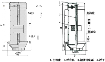 1)、油位信號器底面到最低油位高度至少100mm,出廠時(shí)按此定低油位信號;